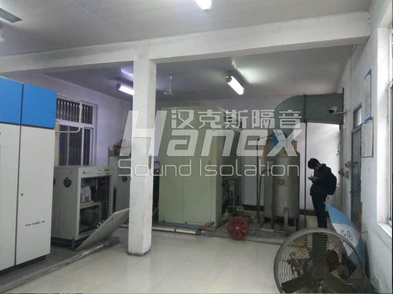 制氧機房內制氧設備運行時,經漢克斯隔音技術人員實測房內噪聲數據值為90dB(A);制氧機房雙開門外噪聲數據值為66dB(A);制氧機房西側排風口噪聲數據值為80dB(A)。